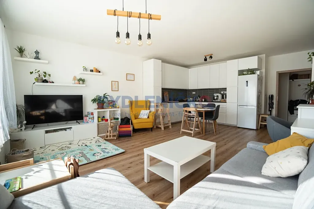 Dispozice – do bytu se vchází prostornou předsíní o velikosti 8,2 m2, kde je místo na vestavěnou skříň či botník. Z této chodby je samostatný vstup do obýváku, ložnice a koupelny. Obývací pokoj s kuchyní má výměru 33,57 m2 a je vybaven kvalitní kuchyňskou linkou se zabudovanou myčkou. Ložnice má výměru 21,71 m2 a je zde místo jak pro velkou šatní skříň, tak malou pracovnu či prostor pro další realizaci. Po pravé ruce je vstup do prostorné koupelny o velikosti 7,09 m2 s dvojumyvadlem a vanou, kvalitními zařizovacími předměty, vývodem na pračku a závěsným záchodem. Velkou výhodou je také okno, díky kterému je možnost v koupelně přirozeně větrat. Zděný sklep v patře nabízí dostatek prostoru pro uskladnění věcí.