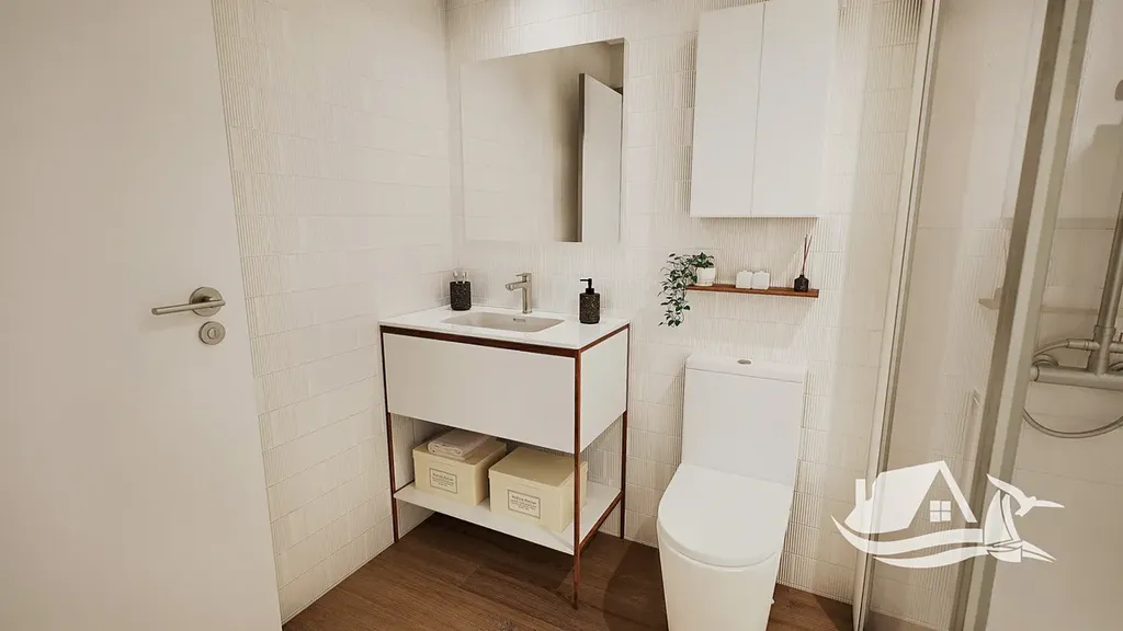 Interiéry jsou vybaveny moderními prvky, klimatizací a vestavěnými skříněmi, které zjednodušují organizaci domácnosti, a základními spotřebiči pro pohodlí každodenního života. Terasy poskytují další prostor pro relaxaci na čerstvém vzduchu a plně využívají středomořského klimatu při snídani i večerních posezeních s výhledem. Společné zázemí zahrnuje dobře vybavenou posilovnu, která umožní udržet aktivní životní styl bez nutnosti docházení, a prostory navržené pro odpočinek i společenské aktivity.