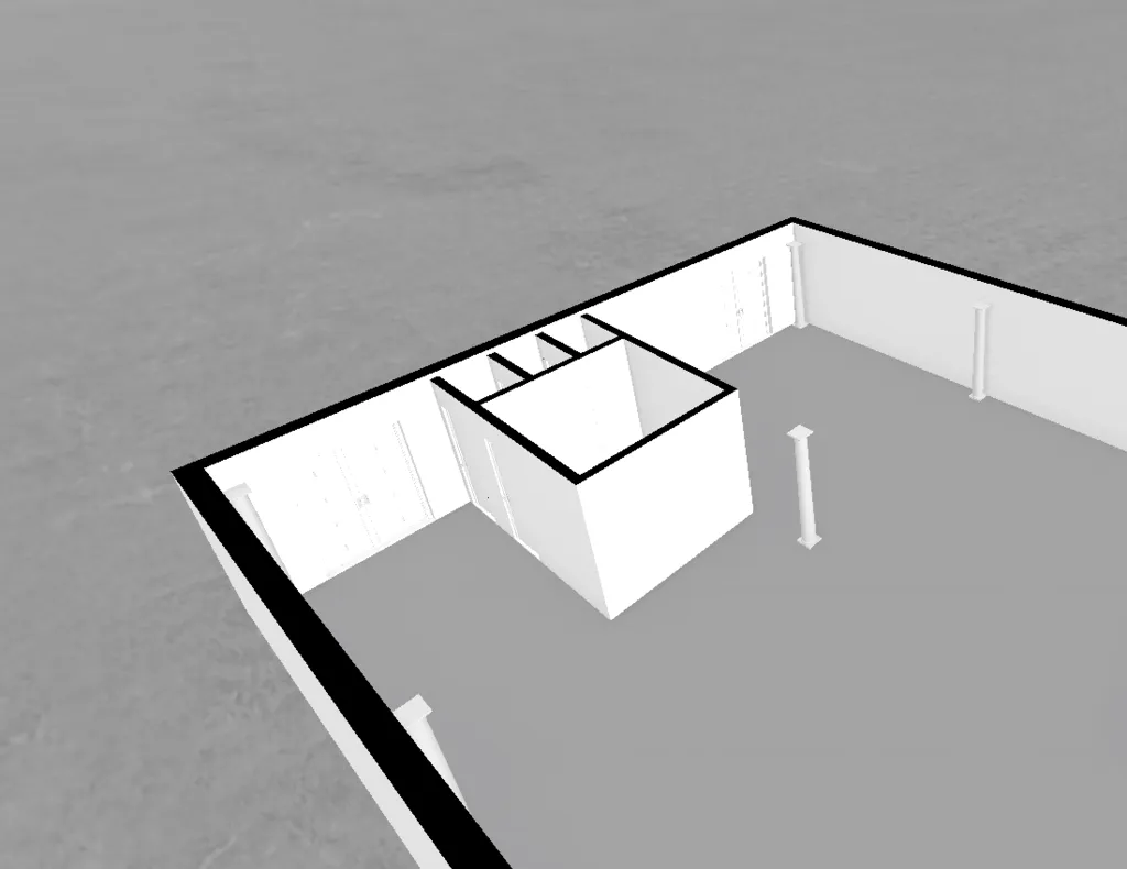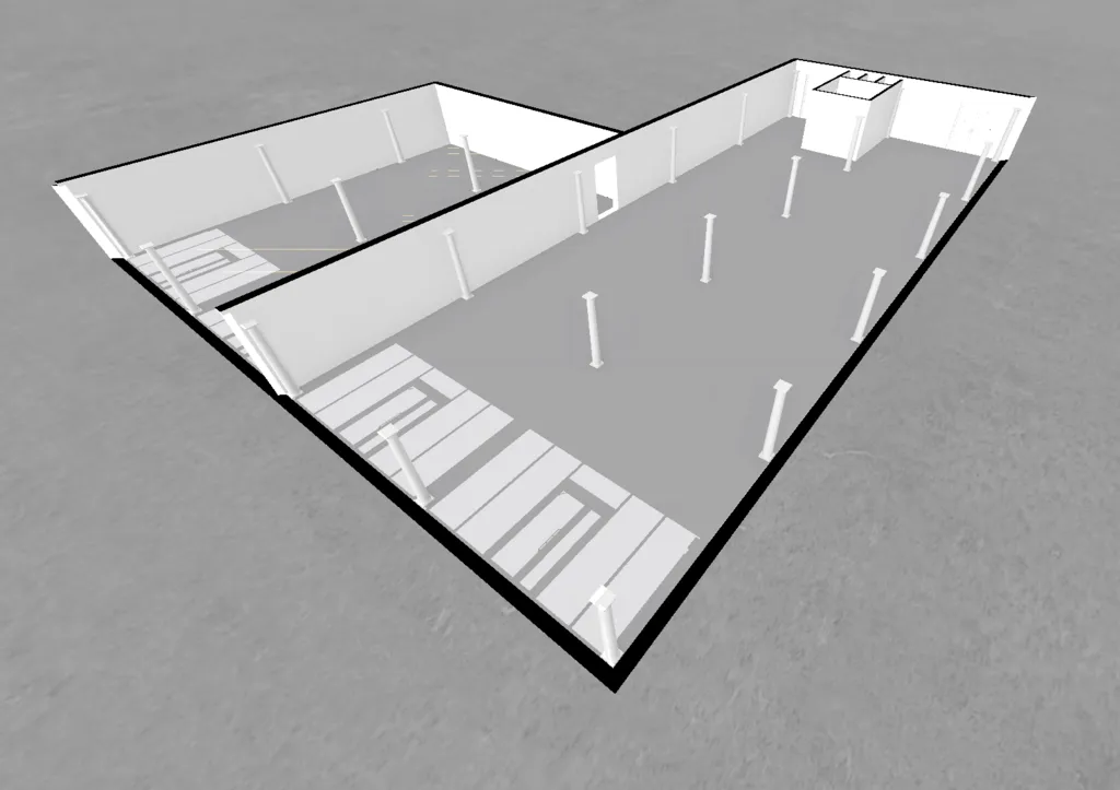 Hlavní skladová hala o rozměrech 30 × 12 metrů (360 m2) nabízí světlou výšku 3,2 metru, která umožňuje efektivní využití regálových systémů i manipulaci s paletovými vozíky nebo nízkozdvižnými vozíky. Pravidelný rastr nosných sloupů po 6 metrech zajišťuje přehledné členění prostoru a usnadňuje organizaci skladových zón.