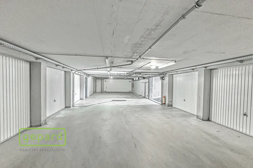 K bytu patří podzemní garáž s přívodem elektrické energie a vody a rovněž zděný sklep (samostatná technická místnost).