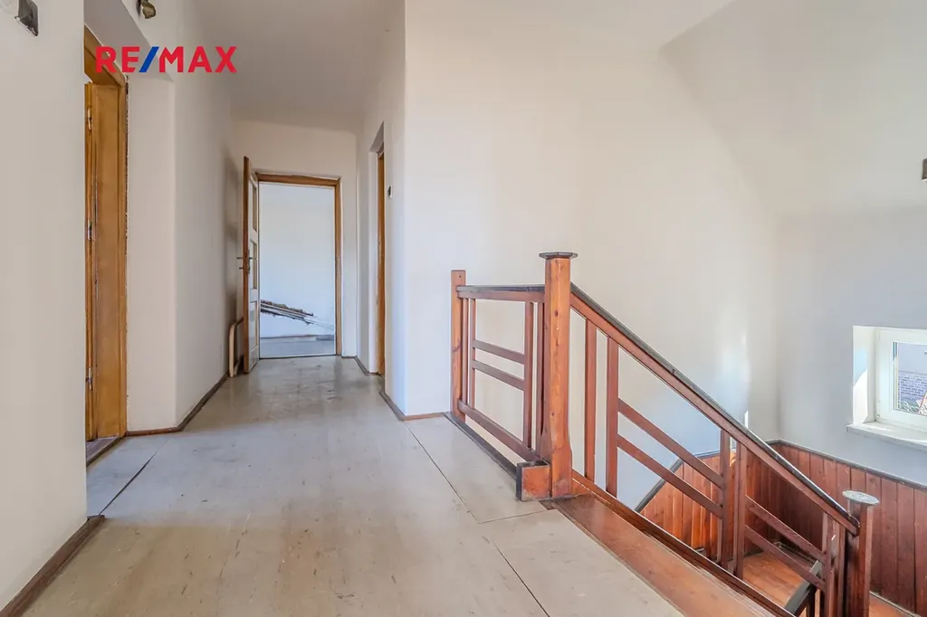 Nemovitost stojí na krásném pozemku o výměře 1 375 m², který nabízí dostatek prostoru pro zahradu, relaxaci i další využití. Součástí pozemku je také hospodářská budova a velkou výhodou je vlastní studna. Příjezd je zajištěn po obecní asfaltové komunikaci. Dům je částečně podsklepený a prošel částečnou rekonstrukcí. V přízemí jsou instalována plastová okna s trojsklem, nové vstupní dveře z přední i zadní části domu a byla zde kompletně zrekonstruována koupelna. Rozvody vody a odpadů jsou v plastu. Střešní krytinu tvoří kanadský šindel, oplechování je z pozinku a komín je vyvložkován nerezovou vložkou. Ohřev vody zajišťuje elektrický bojler, vytápění kotel s podavačem na peletky nebo uhelný hrášek. K dispozici jsou také krbová kamna jako příjemný sekundární zdroj tepla. Dispozice domu nabízí široké možnosti využití. Lze jej užívat jako komfortní 5+1 se dvěma koupelnami a WC, kdy v přízemí se nachází komora a vstupní hala, v patře pak dvě šatny a vstup na terasu. Alternativně je možné dům rozdělit na dvě samostatné bytové jednotky 2+1 – jednu v přízemí a druhou v patře s terasou, což je ideální například pro vícegenerační bydlení či investiční záměr. Dům je napojen na elektřinu, vodu a obecní kanalizaci, přípojka plynu je přivedena na hranici pozemku. Samozřejmostí je kompletní občanská vybavenost v dosahu – školy, školky, obchody i zastávky MHD. Pokud hledáte dům s potenciálem, dostatkem prostoru a skvělou adresou, tato nabídka je právě pro vás. Rádi vám nemovitost osobně představíme a zdarma zajistíme výhodné financování na míru.