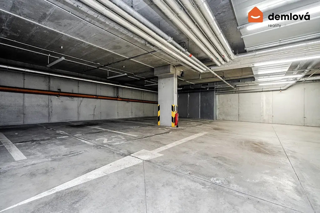 Součástí prodeje je garážové parkovací místo v suterénu domu a sklepní kóje. V domě je k dispozici je také společná kolárna.
