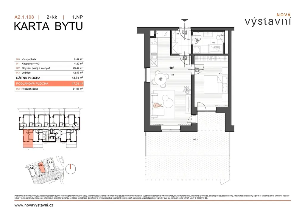 • Dispozice 2+kk s podlahovou plochou 47,3 m2