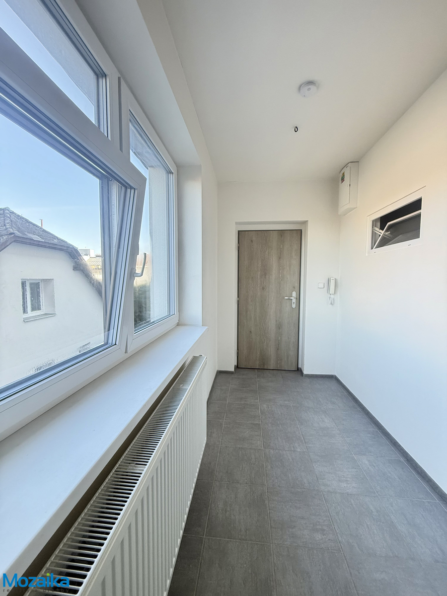 Co vás čeká uvnitř ? Hned po vstupu do bytu vás přivítá prostorná vstupní chodba o rozloze 11,15 m², která je vybavena praktickou šatní skříní – máte tedy dostatek úložného prostoru již od prvního kroku. Koupelna je vybavena sprchovým koutem, umyvadlem se zrcadlem a WC, takže vám nabízí vše, co pro každodenní komfort potřebujete. Srdcem bytu je obývací pokoj s vybaveným kuchyňským koutem, který disponuje kuchyňskou linkou, sporákem a odsavačem par. Z pokoje pak vedou balkónové dveře přímo na terasu před domem – ideální místo pro ranní kávu, posezení v teplých večerech nebo jednoduše pro chvíli odpočinku na čerstvém vzduchu. Celková užitná plocha bytu činí 40,27 m², což představuje promyšlené a funkční řešení prostoru, kde je každý metr čtvereční využit na maximum. Stav objektu je výborný, takže se nemusíte obávat žádných nepříjemných překvapení. Byt se nachází v jedné z nejatraktivnějších poloh v Lanškrouně. Přímo naproti bytovému domu stojí moderní multifunkční centrum Forea, kde najdete vše potřebné pro každodenní volnočasové aktivity i kulturní vyžití. Na náměstí se dostanete pohodlnou pěší chůzí za pouhých 5 minut – restaurace, kavárny, obchody, úřady i veškerá občanská vybavenost jsou tedy doslova na dosah ruky. Cihlový bytový dům, ve kterém se byt nachází, zaručuje příjemné bydlení s výbornou tepelnou i zvukovou izolací. Měsíční nájemné činí 9 500 Kč, zálohy na energie jsou stanoveny na 3 900 Kč měsíčně. Před nastěhováním je požadována vratná kauce ve výši 13 400 Kč a jednorázová provize realitní kanceláře 11 500 Kč. Byt je volný ihned, takže se do svého nového domova můžete nastěhovat bez zbytečného čekání.