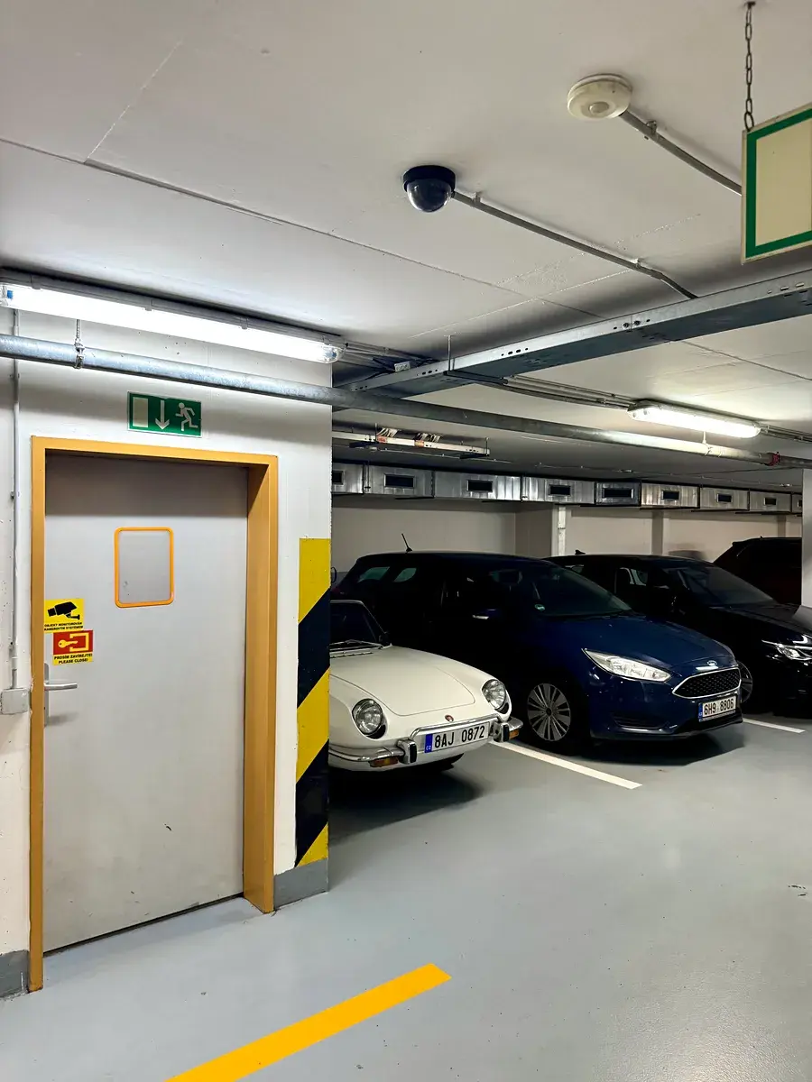 Vjezd do garáží je na dálkové ovládání, celý objekt je monitorován kamerovým systémem, což zajišťuje bezpečné parkování.