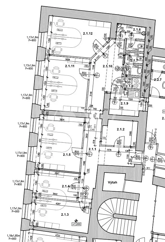 Nabízíme k pronájmu kancelář s klimatizací o velikosti 117 m2 ve 2.patře: