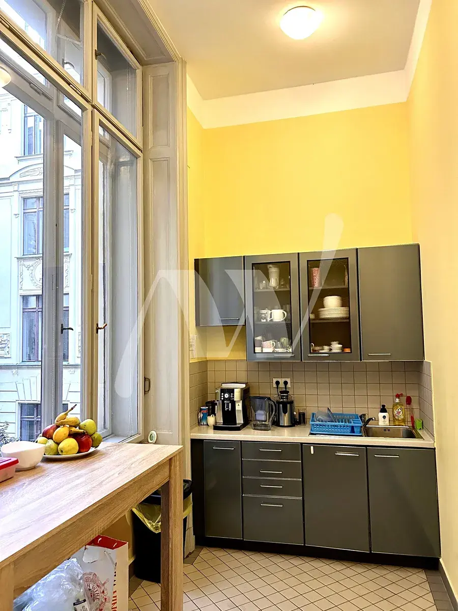 Nabízíme k pronájmu atypickou kancelář s vysokými stropy s historickým dřevěným obložením a osvětlením. Celková velikost je 538 m2 a nachází se v 1.patře budovy OLYMPIC GARDEN ve Spálené 14. Kancelář má nově repasovanou parketovou podlahu a bude čerstvě vymalovaná.