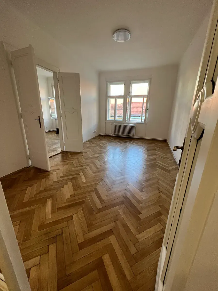Byt prošel kompletní rekonstrukcí přibližně před dvěma lety a nabízí kombinaci moderního standardu a klasických prvků typických pro pražské činžovní domy – vysoké stropy, velká okna a renovované dubové parkety ve vzoru rybí kosti.
