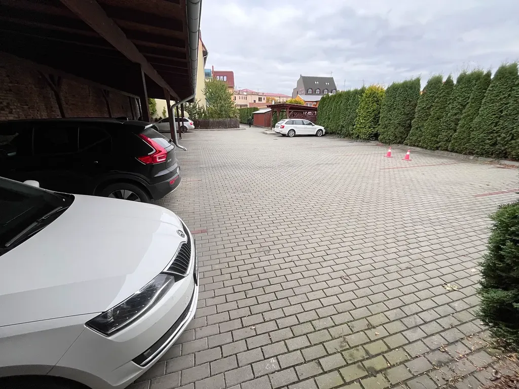 Možnost přikoupit 2 koncová krytá parkovací stání v uzavřeném dvoře se zámkovou dlažbou a příjezdovou bránou s otevíráním na dálkové ovládání. Díky výhodnému umístění parkovacích míst v rohu lze využít i prostor na stěnách i okolo parkovacích míst.
