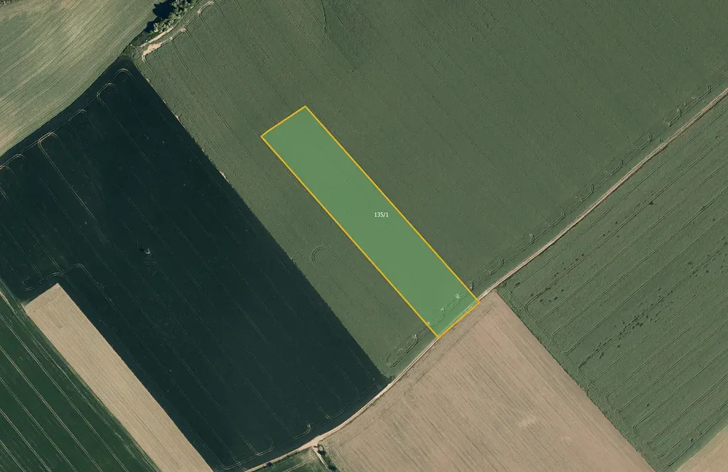 Celková výměra pozemku činí 19 989 m², přičemž k prodeji je vlastnictví 4 997 m². Druhem pozemku je orná půda.