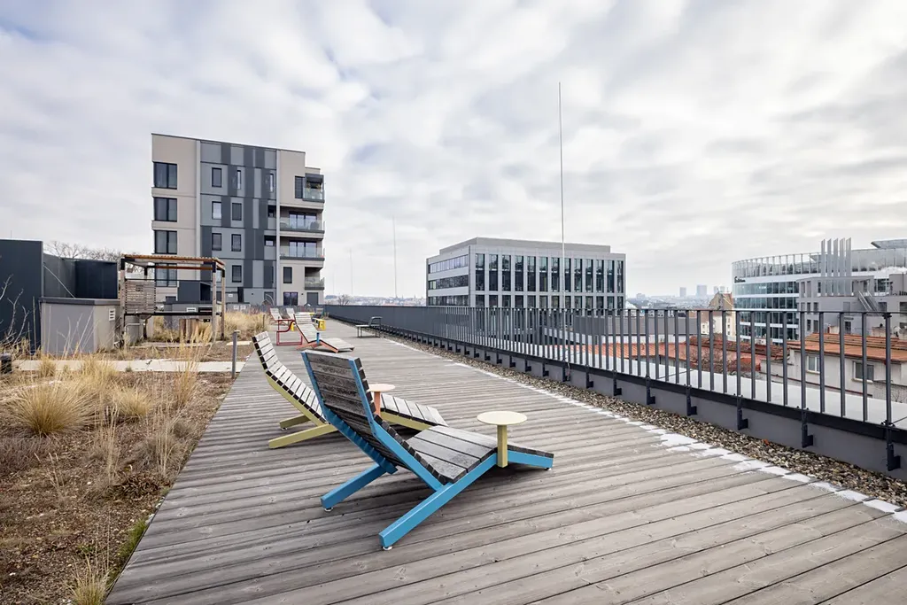 NEUGRAF je oceněným Realitním projektem roku 2021 a představuje moderní evropský koncept bydlení.Součástí uzavřeného areálu je 24hodinová recepce i nepřetržitá ostraha. Rezidenti mohou využívat střešní terasu s jedinečnými výhledy na Prahu – ideální pro relaxaci nebo barbecue s přáteli. V rámci projektu je k dispozici také soukromé wellness, vnitřní zahrada plná zeleně, kavárna, společná prádelna a coworkingové centrum. To vše v klidné rezidenční části oblíbeného Smíchova, přesto jen několik minut od centra.