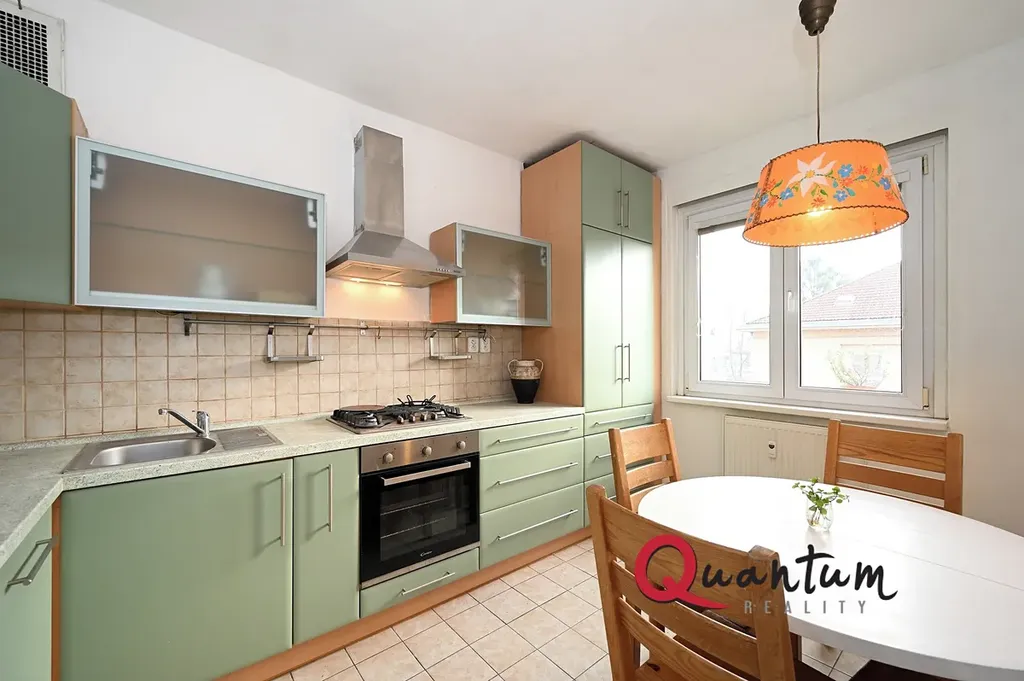 Byt je velmi dobře řešen, má 2 neprůchozí pokoje a nabízí se částečně zařízený a vybavený (oproti fotografiím v bytě není lednice s mrazákem a pračka). Je zde kuchyňská linka se spotřebiči – plynová varná deska, el. trouba, a jídelní stůl se židlemi. V koupelně je vana, WC samostatně, na chodbě praktické vestavěné skříně. V jednom pokoji je postel s úložným prostorem, ve 2. pokoji šatní skříň. Podlahy jsou plovoucí a dlažba, okna plastová se žaluziemi, vytápění ústřední dálkové. K bytu náleží i sklepní kóje v suterénu domu. Z pokojů je krásný výhled do zeleně.