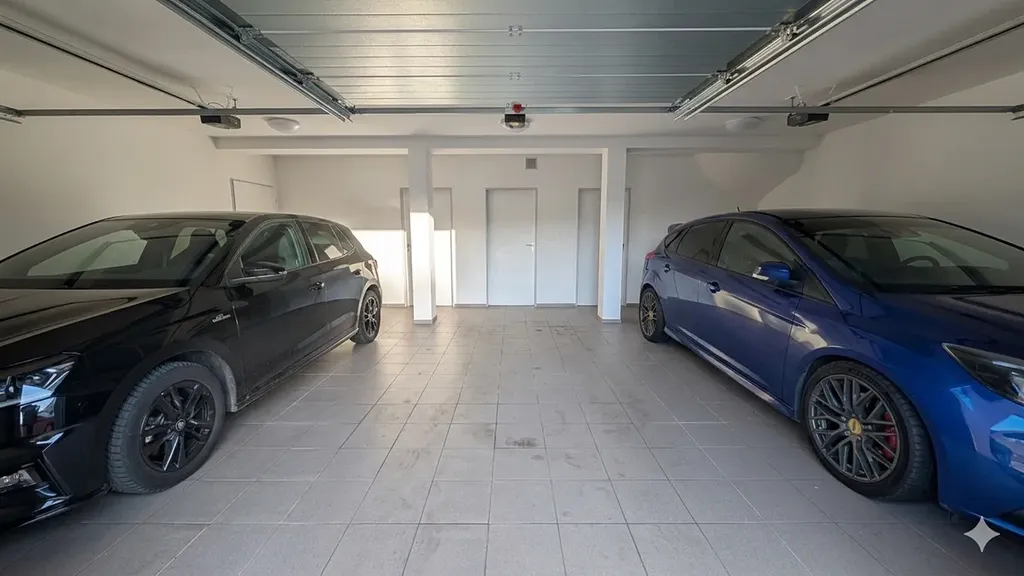K bytu náleží vlastní garážové stání s možností parkování i před garáží a samostatný zděný sklep. V případě potřeby je v areálu k dispozici pronájem dalších parkovacích míst.