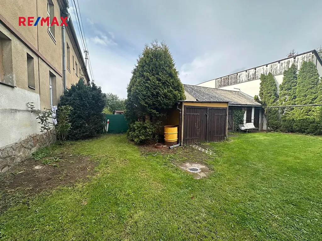 Bytový dům disponuje vnitroblokem, který skýtá příjemný prostor k posezení v zeleni a možnost parkování i uložení věcí ve venkovních kójích.