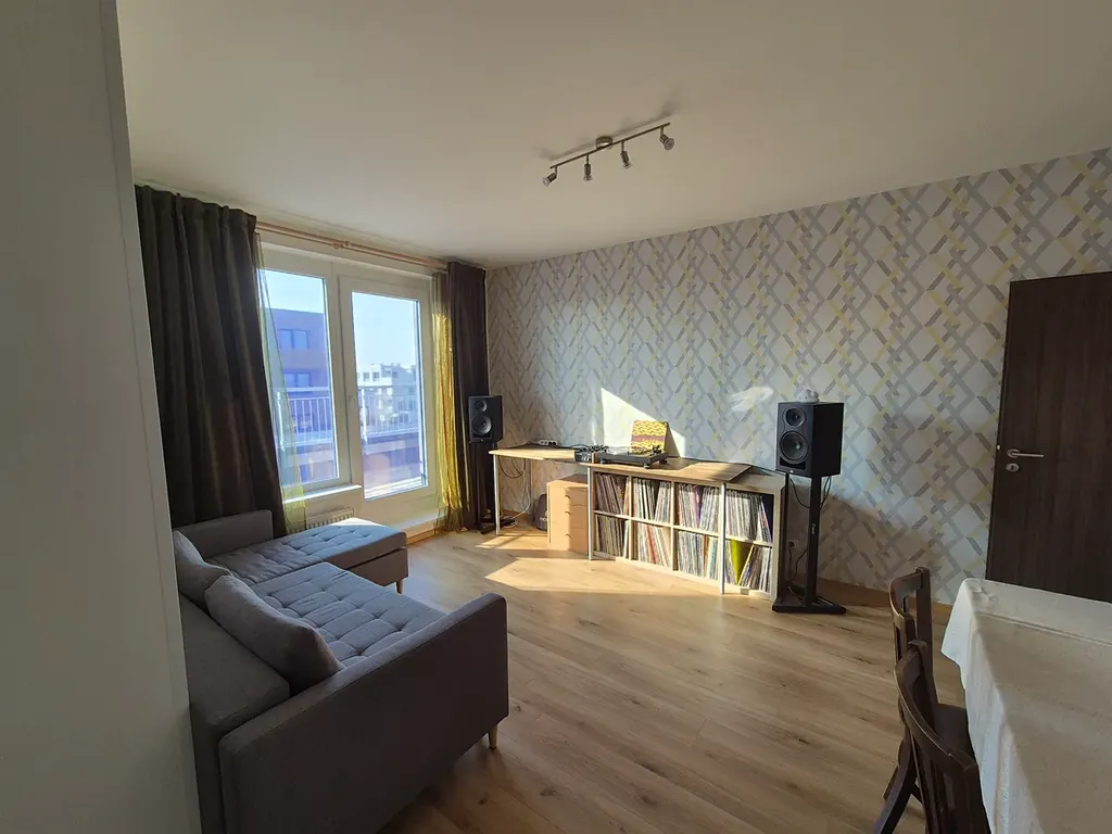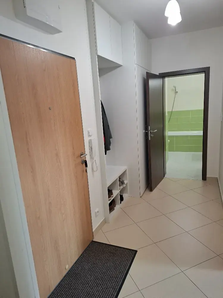 Celý byt s velkými okny a vstupem na prostornou terasu je orientován na západ. Součástí ceny je plně funkční a vybavená kuchyně včetně spotřebičů (sklokeramická varná deska, el. trouba, digestoř), v předsíni je dále umístěna skříň s botníkem, objednaná na míru, přičemž v levé části předsíně (chodby) je ještě nevyužitý volný prostor, vhodný k finalizaci, dle potřeb kupujícího. Samostatná neprůchozí ložnice se vstupem z předsíně a výhledem z okna na terasu. Koupelna s vanou a s prostorem pro umístění pračky a s WC. Na oknech záclony a závěsy.