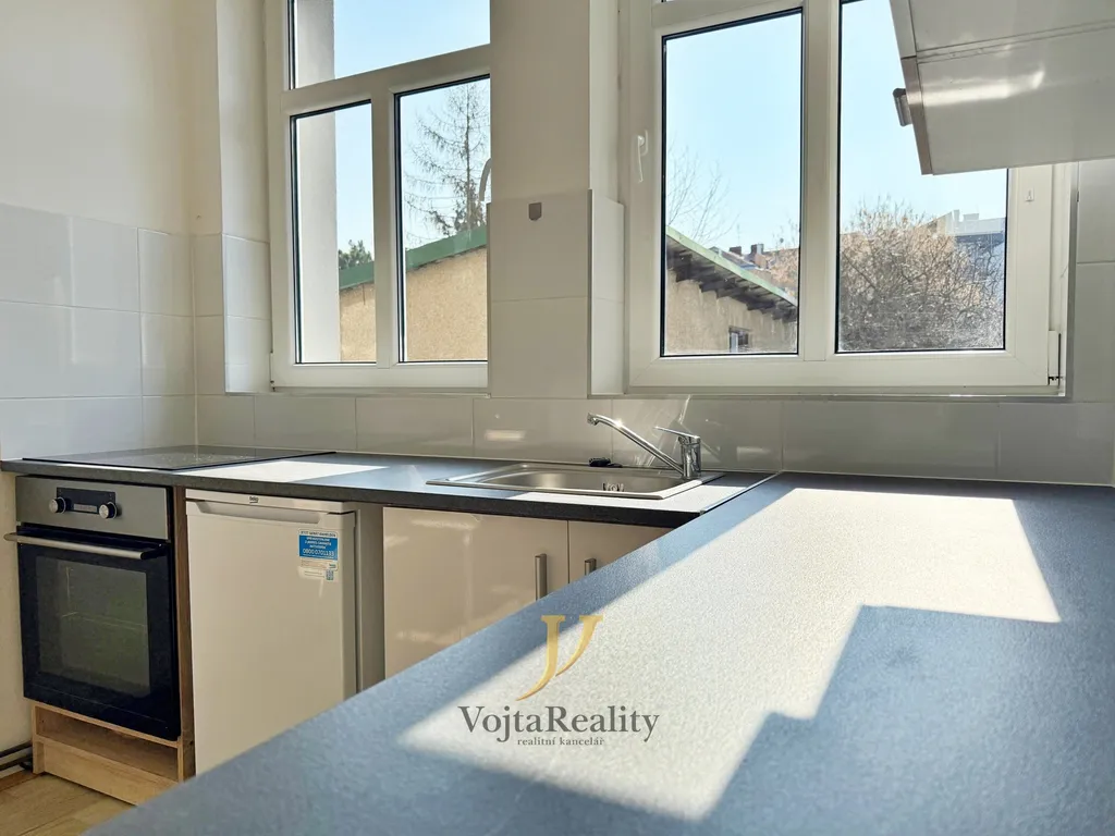 Byt je prakticky řešen a poskytuje příjemné bydlení s dostatkem denního světla. Dispozice zahrnuje obývací pokoj s kuchyňským koutem a výhledem do klidného vnitrobloku, menší samostatnou ložnici, koupelnu se sprchovým koutem a předsíň. Kuchyň je vybavena sporákem, troubou a lednicí.