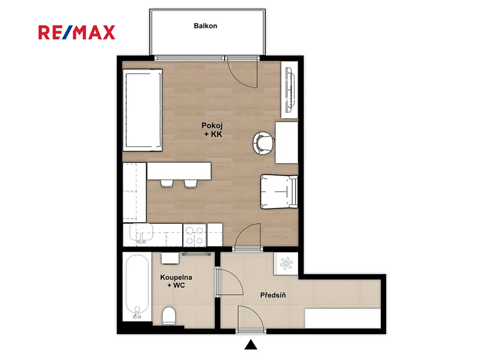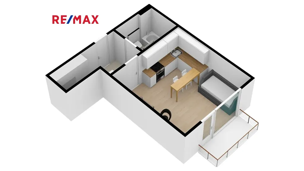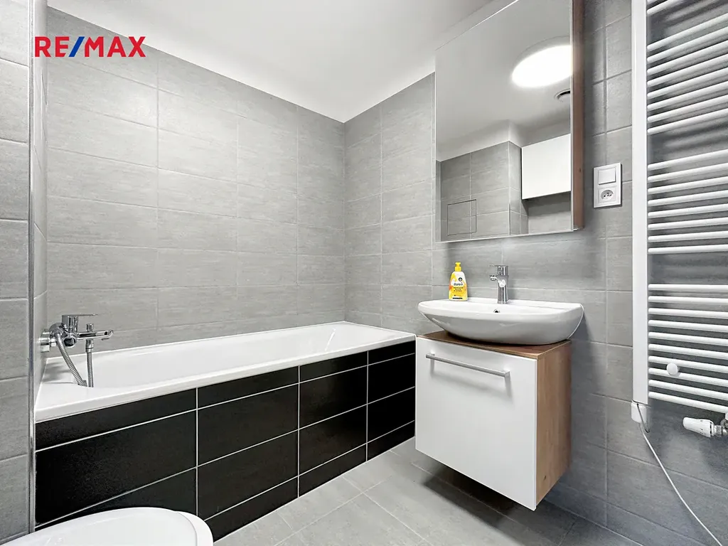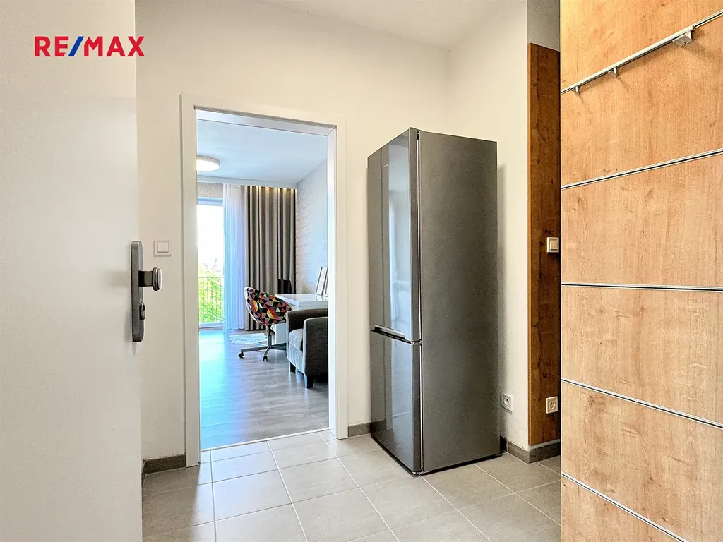 Prostor je prakticky řešen: vstupní chodba s prostornou vestavěnou skříní, koupelna s vanou a WC a hlavní obytná místnost s velkorysou kuchyňskou linkou vybavenou vestavěnými spotřebiči (elektrická trouba, sklokeramická varná deska, myčka nádobí). Díky velkému francouzskému oknu je obytná část světlá a slunná. Součástí bytu je také balkón, ideální pro ranní kávu, krátký odpočinek po práci nebo klidné posezení. Vytápění a ohřev vody jsou zajištěny ústředním plynovým vytápěním. Dům je moderní a dobře udržovaný a splňuje energetickou třídu PENB B, což znamená velmi úsporný provoz.