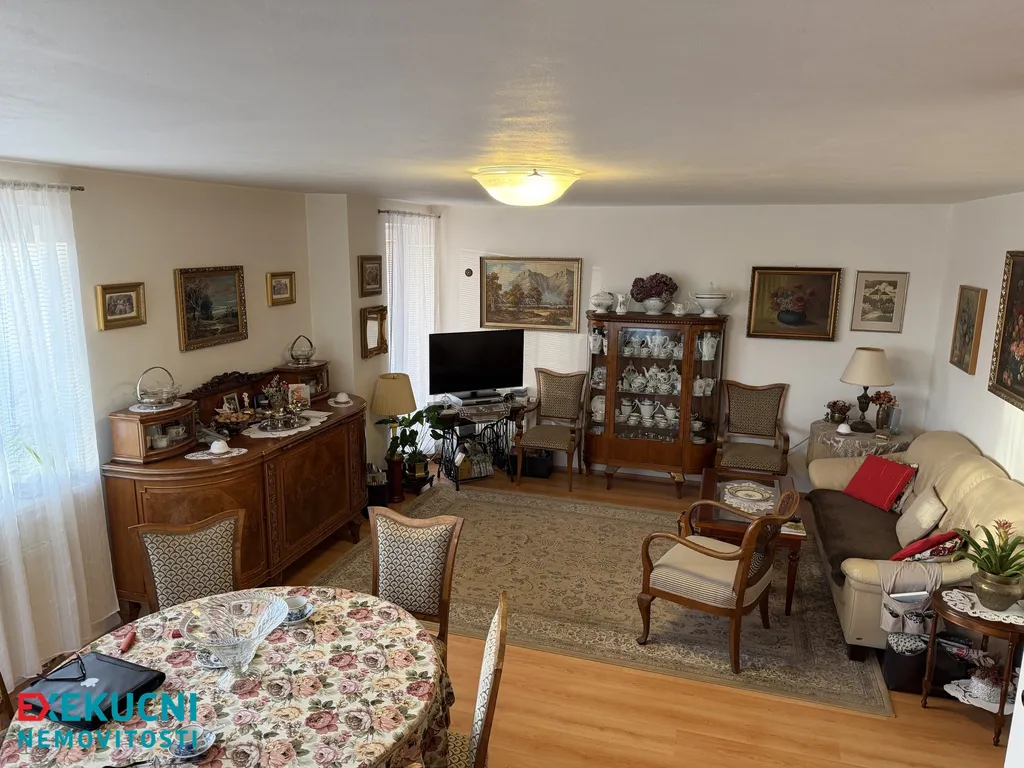 Byt nabízí velkorysý obývací pokoj s kuchyňským koutem, tři samostatné neprůchozí pokoje, prostornou koupelnu s vanou i sprchovým koutem, samostatné WC, dvě šatní komory a prostornou předsíň. V bytě byly použity nadstandardní materiály.