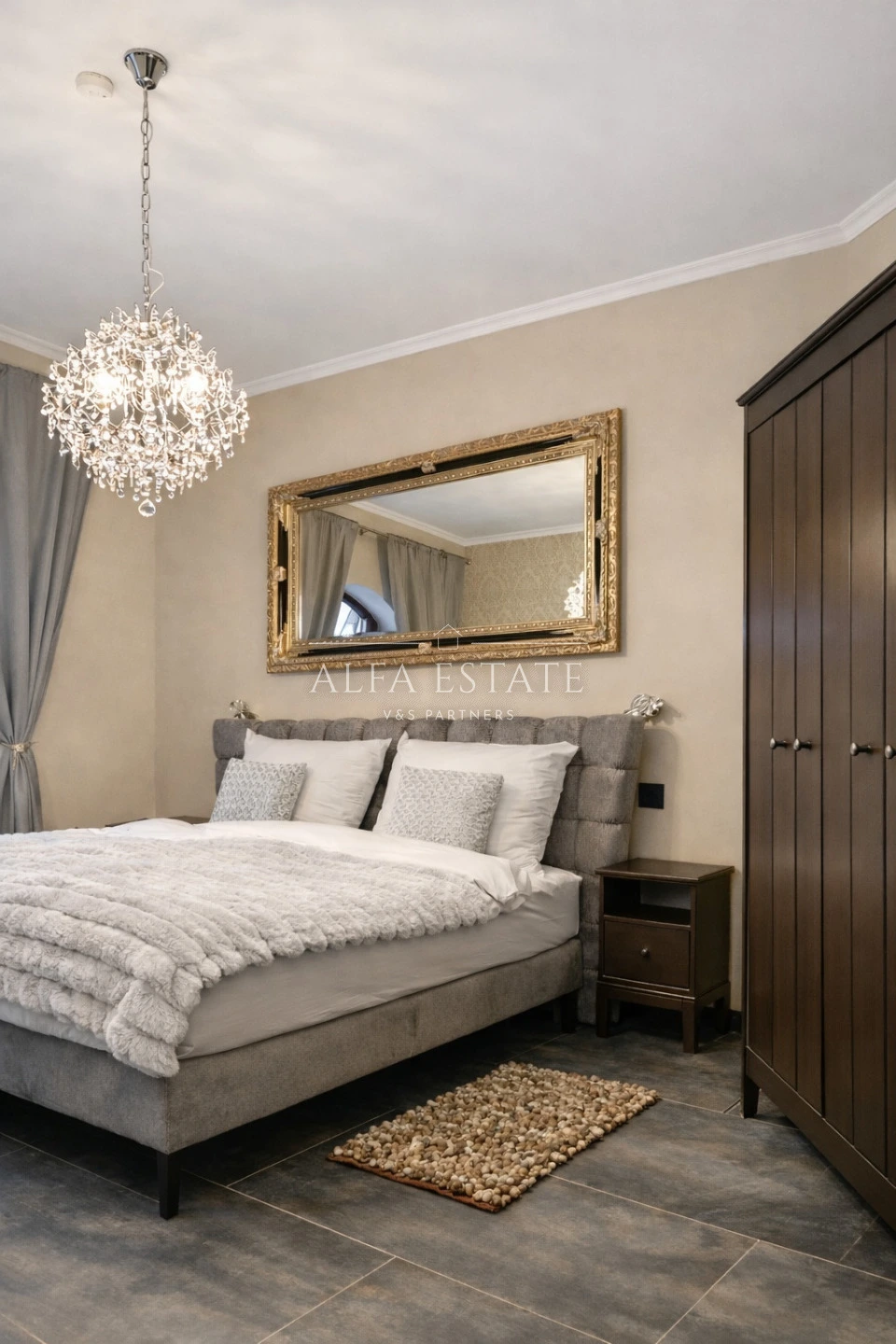 Na obytný prostor plynule navazuje stylová a prostorná ložnice, která nabízí klidné zázemí pro odpočinek a je vybavena kvalitním lůžkem pro maximální pohodlí.