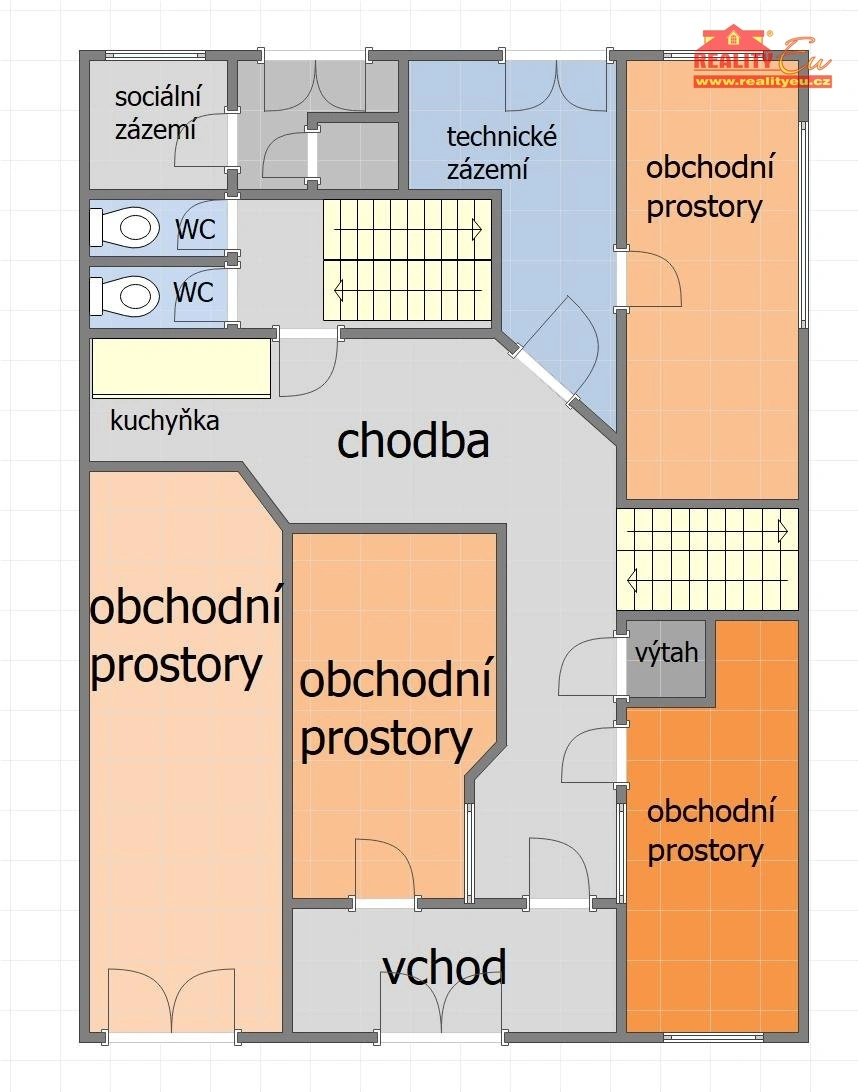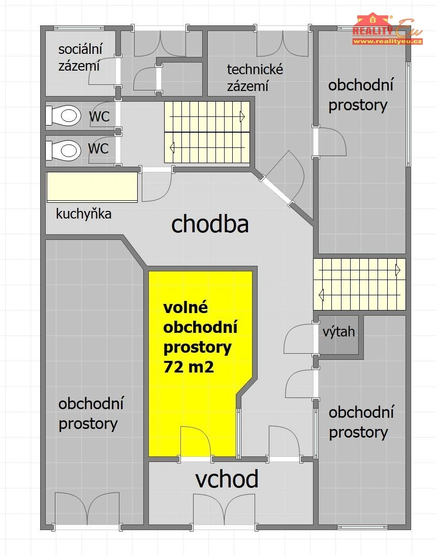 Velmi světlé obchodní prostory s vlastním vstupem o výměře 72 m². Umístěny jsou ve střední části u hlavního vchodu v 1.NP. Vhodné i jako kontaktní nebo prodejní místo pro silné společnosti s důrazem na vlastní prezentaci. V dalších podlažích budou k dispozici různě veliké kvalitní klimatizované kanceláře. V každém patře odpovídající sociální zázemí. Prostory lze ještě přizpůsobit na míru k požadavkům zákazníka. Vhodné pro silné společnosti hledající stabilní zázemí na dobré adrese, pohodlný přístup a rozsáhlé sebeprezentační možnosti pro své zákazníky. Parkování za objektem zajištěno. Pohodlí a bezpečí pro klienty umožňuje výtah a kamerový systém. Unikátně postavená budova nabízí zajímavé komerční nebo administrativní prostory moderního střihu s vysokým stupněm variability. Nájem je bez kauce a poplatků realitní kanceláře.