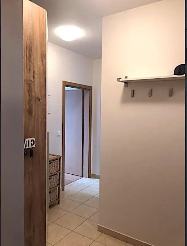 Byt má celkovou podlahovou plochu 61 m2 a sestává z předsíně s vestavěnými skříněmi, prostorného obývacího pokoje s kuchyňským koutem vybaveným spotřebiči (varná deska, trouba, myčka, lednice s mrazákem), samostatné neprůchozí ložnice se vstupem na balkon (6 m2), koupelny s vanou a toaletou. Byt je částečně zařízen, v ložnici je šatní skříň a komoda, v obývacím pokoji TV stolek a policová skříňka, v koupelně pračka. Byt je ve velmi dobrém stavu, plastová okna se žaluziemi, plovoucí podlahy + dlažba. V domě je plynová kotelna (topení, ohřev vody).