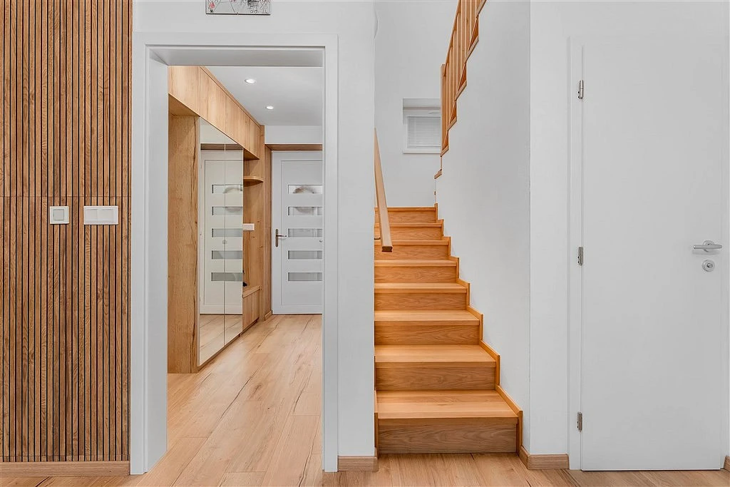 ___ Dvoupodlažní rohový dům se zahradou stojí na pozemku 399 m² ve vyhledávané rezidenční oblasti nad městem. Původní dům z roku 1970 byl odstraněn a na jeho základech vystavěná novostavba byla dokončena v roce 2024. Dům je chráněn kamerovým systémem, je napojen na veřejný vodovod i kanalizaci, elektřina 220 i 380 V. Podlahové topení ve všech místnostech, spotřeba elektřiny (i díky krbu... ) pouhých 3.000 Kč/měsíc.
