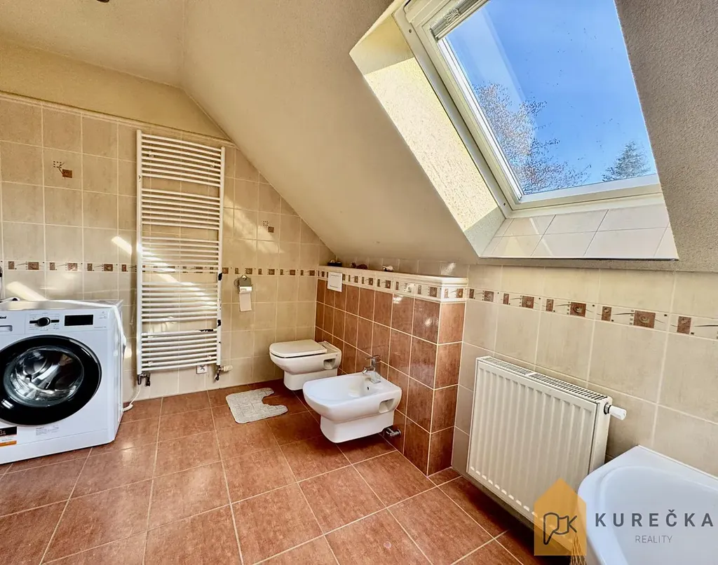 Nabízíme exkluzivně prodej rodinného domu (5+1)) s užitnou plochou 195 m2, OV, Karlovice, okr. Bruntál. V 1NP je pokoj, WC, kuchyně s linkou a elektrosporákem a varnou deskou, myčkou a rozlehlou jídelnou. Vedle kuchyně je obývací pokoj s krbovými kamny na TP a vstupem na venkovní terasu. V 2NP se nachází tři pokoje se vstupem na balkon a rozlehlou lodžii spolu s velkou koupelnou se sprchovacím koutem, rohovou vanou, WC a bidetem. Celková výměra 1NP je 76 m2 a 2NP také 76 m2. Ve sklepě 73 m2 je instalována technologie tepelného čerpadla, domácí vodárna a několik místností. Kolem domu je oplocená zahrada 1778 m2 s pergolou, saunou na TP ve tvaru sudu a uzákem spolu s ohraničeným prostorem pro psa. Celková výměra pozemku s RD činí 1922 m2. Před domem je vlastní kopaná studna a také přípojka na vodovod a podtlakovou kanalizaci spolu rozměrnými ovládanými vraty umožňující vjezd a parkování vozidel. Garáž v RD 17 m2 má elektroovládání vrat. V blízkosti jsou služby, mateřská, základní škola, sportovní a kulturní zázemí, výborná dostupnost autem, vlakem či autobusem. RD je přístupný z veřejné komunikace. Velmi hezké místo obklopené lesy vhodné pro trvalé ale i rekreační bydlení. V blízkosti najdete město Vrbno pod Pradědem, lázně Karlova Studánka, kde je to již kousek na horu Praděd. Přijďte se podívat a v zimě si sebou vezměte lyže !