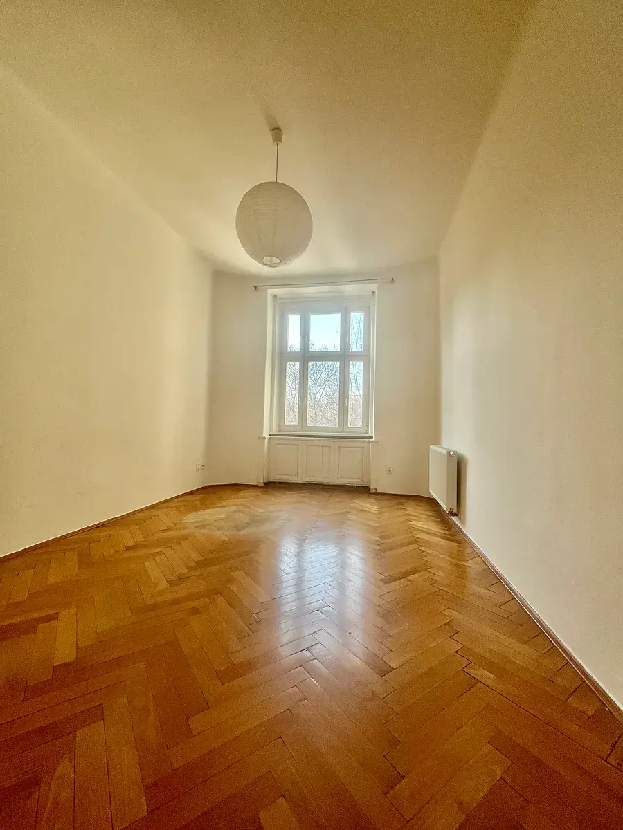 Pronájem hezkého bytu v centru Prahy - 4+1/B, Praha 5 - Smíchov, cca 130m2, 2. patro s výtahem v cihlovém domě. Jedná se o byt po úpravách, dispozičně dobře řešený - 2 samostatné pokoje, 2 pokoje průchozí, prostorná kuchyň s jídelním koutem a výhledem do parku Portheimka, 2 koupelny - vana a sprchový kout, 2 x WC. Parkety, dlažba, k dispozici velká předsíň - hala.