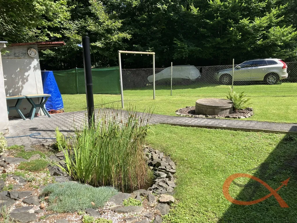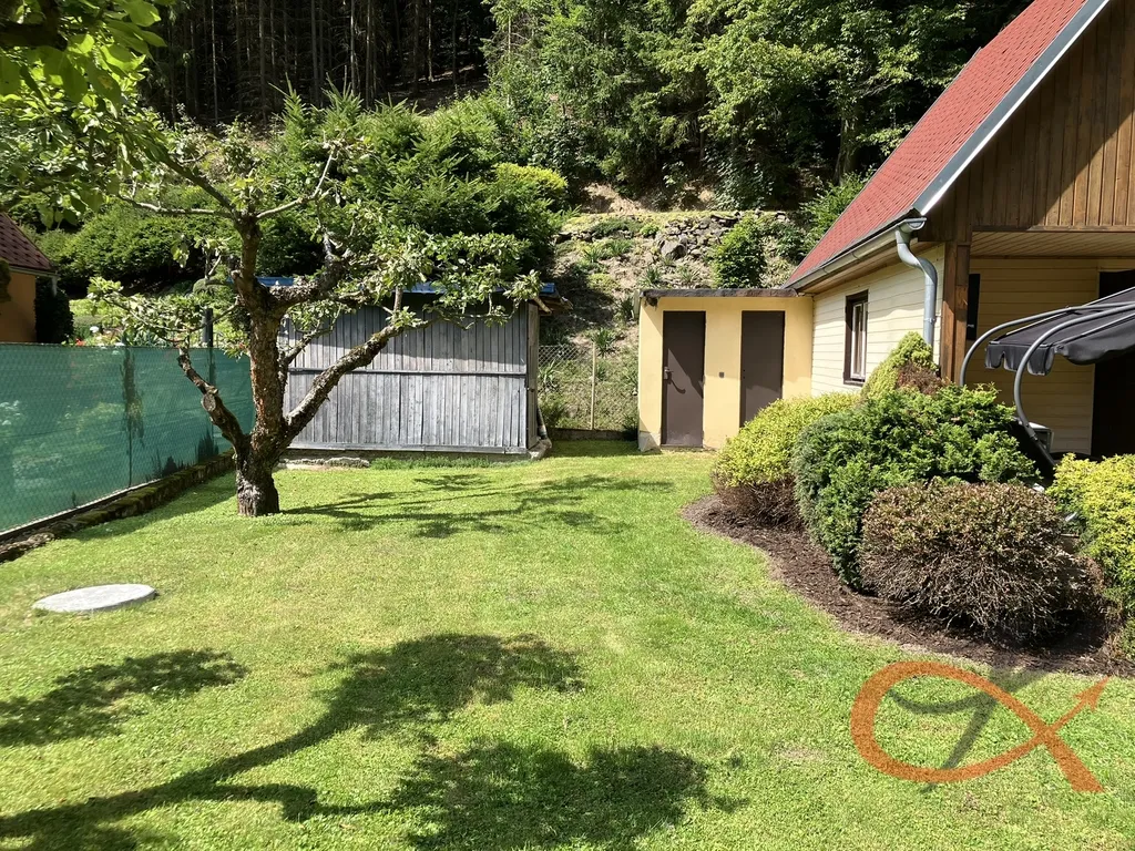 Před chatou se nachází místo pro venkovní posezení a dále okrasná zahrada, která nabízí prostor pro pěstování rostlin a ovocných stromů nebo klidné relaxační chvíle v přírodě. Vedle chaty je situována udírna a dřevěná vedlejší stavba s přístřeškem ke skladování.