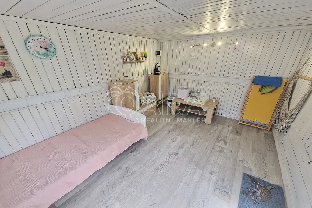 Nabízíme moc pěknou dřevěnou chatku (11 m2) v zahrádkářské kolonii Spořilov na Praze 4, poblíž Geofyzikálního ústavu. Chatka má zavedenou elektřinu (jedna fáze) a letní vodovod (duben až říjen). Pozemek je 225 m2. Chatka má novou elektřinu, rozvod vody, plechovou střechu, podlahu, natřené palubky, bednu na nářadí. Pod chatkou je sklep cca 4 m2. Na pozemku jsou ovocné stromy, skalka, hnojiště, voda z okapu je svedená do barelu. Členové zahrádkářského svazu mají v kolonii k dispozici společnou klubovnu, moštárnu, WC a některá nářadí jako třeba kolečko, hrábě atd. Jedná se o převod členství. Pozemek je v nájmu od města. Roční náklady jsou cca 6.000,-Kč včetně nájmu za pozemek. Volejte a domluvte si prohlídku.