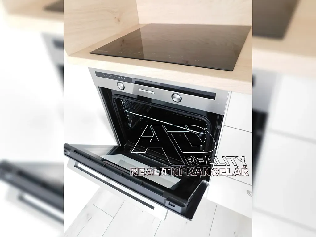 Byt je k dispozici včetně základního vybavení – kuchyňská linka, elektrická sklokeramická varná deska, vestavěná trouba, vestavěná myčka nádobí, digestoř, lednice s mrazákem, šatní skříň.