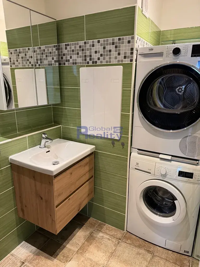 Byt prošel zhruba před 15lety rekonstrukcí a je vybaven skříněmi a kuchyňskou linkou včetně veškerých elektrospotřebičů. Navíc je v koupelně k dispozici pračka i sušička. Součástí je i komora na patře a sklep.