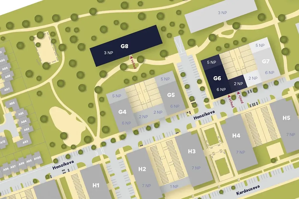 Ve výhradním zastoupení vlastníka nabízíme prodej družstevního bytu 513/G6 dispozice 2+kk o ploše 43,3 m² s balkonem o ploše 4,3m v 5. NP budovy „G6“ v aktuálně probíhající výstavbě projektu MALÝ HÁJ XV přiléhajícímu k Honzíkově ulici v Praze 10 – Dolních Měcholupech. Součástí prodeje je i garáž a komora, oboje zahrnuté v inzerované ceně. Byt s balkonem je orientovaný na jih, poloha bytu 513/G6 je v přiloženém plánu podlaží.
