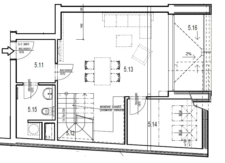Dispozice bytu zahrnuje vstupní chodbu, tři samostatné pokoje, prostorný obývací pokoj s kuchyňským koutem, dvě koupelny a vnitřní schodiště. K bytu náleží také tři terasy o velikostech 6,12 m², 14,10 m² a 8,40 m², které poskytují příjemný prostor pro relaxaci či posezení na čerstvém vzduchu. Součástí je rovněž samostatný sklep o velikosti 3 m² umístěný v přízemí domu a dvě parkovací stání.
