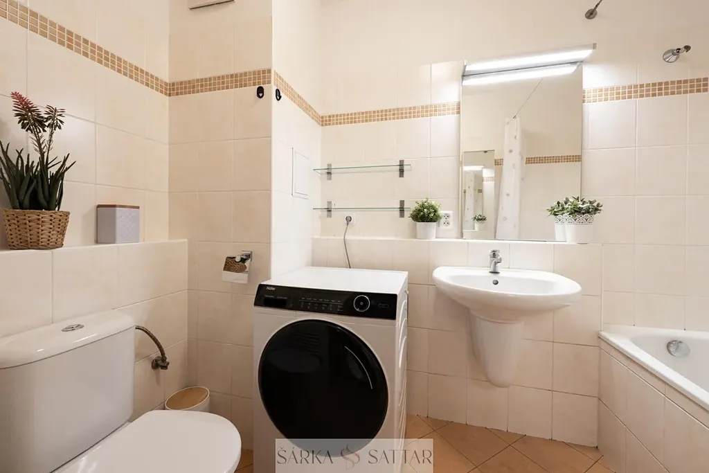 - koupelnu s vanou, umyvadlem, přívodem na pračku a toaletou