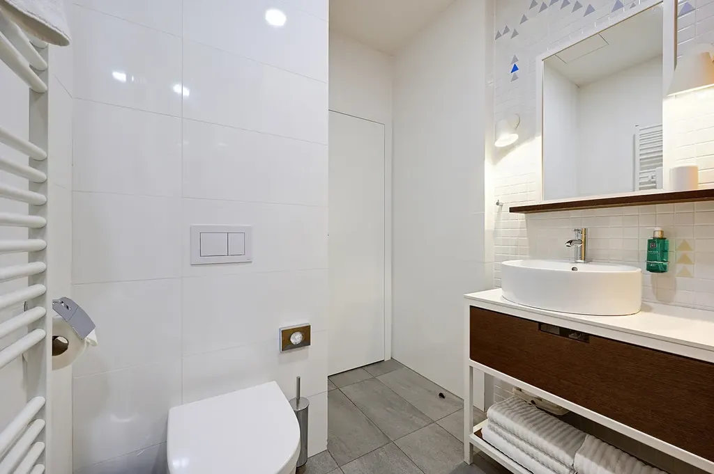 Apartmán s dispozicí 2+kk o velikosti 45 m2 nabízí špičkový design a nadstandardní prvky, které u běžných horských bytů nenajdete: