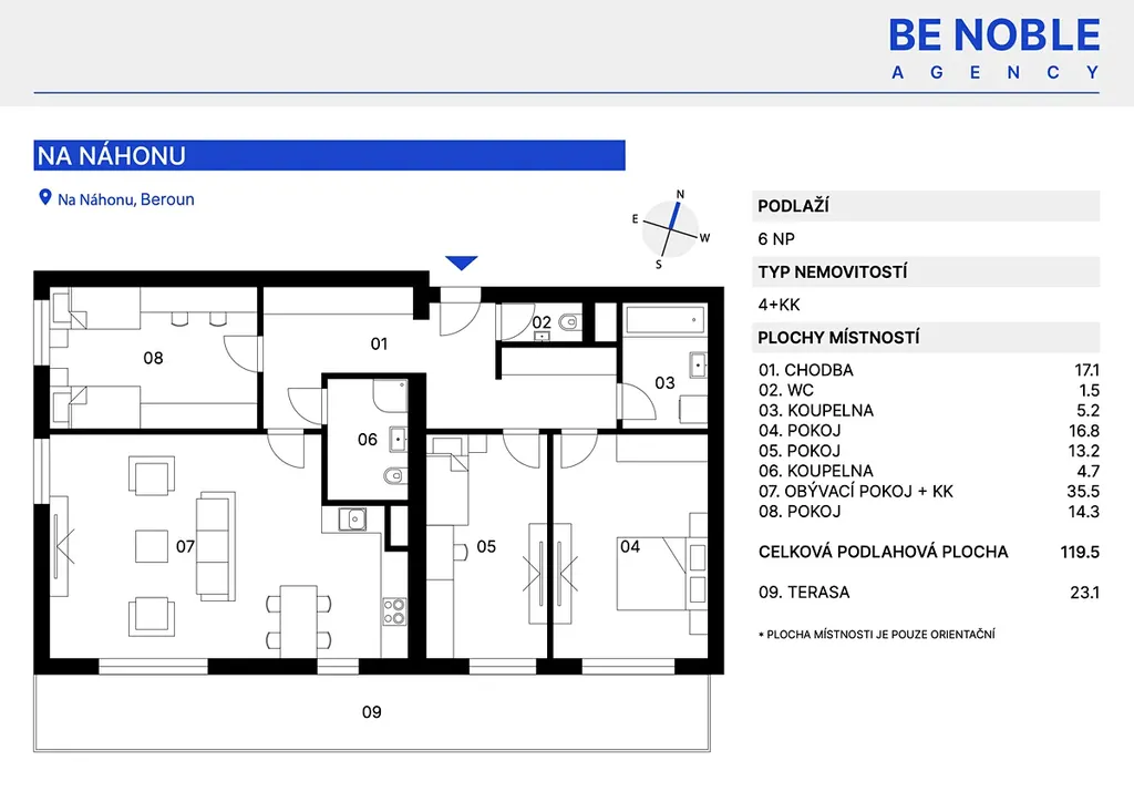 Ráda bych vám nabídla k prodeji prostorný jižně orientovaný byt 4+kk o velikosti 119,5 m² s krásným výhledem. K bytu náleží sklep a parkovací místo v garáži.