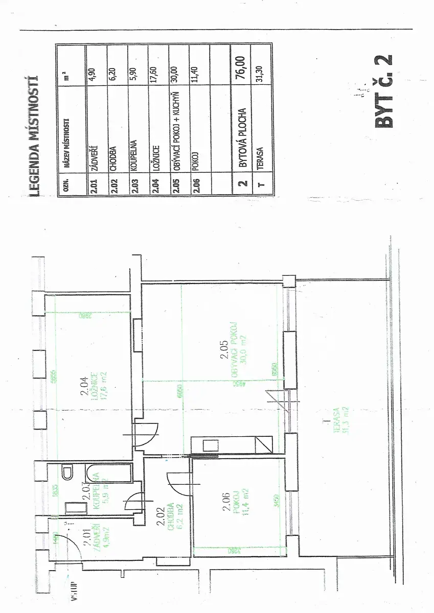 Byt (76 m2) je umístěn v přízemí domu s obývacím pokojem, ložnicí a terasou (31,30 m2) orientovanou na jih. Terasa nabízí nádherné výhledy do okolí a celkově je výraznou přidanou hodnotou bytu. Její částečné zastřešení řeší využití prostoru za každého počasí.