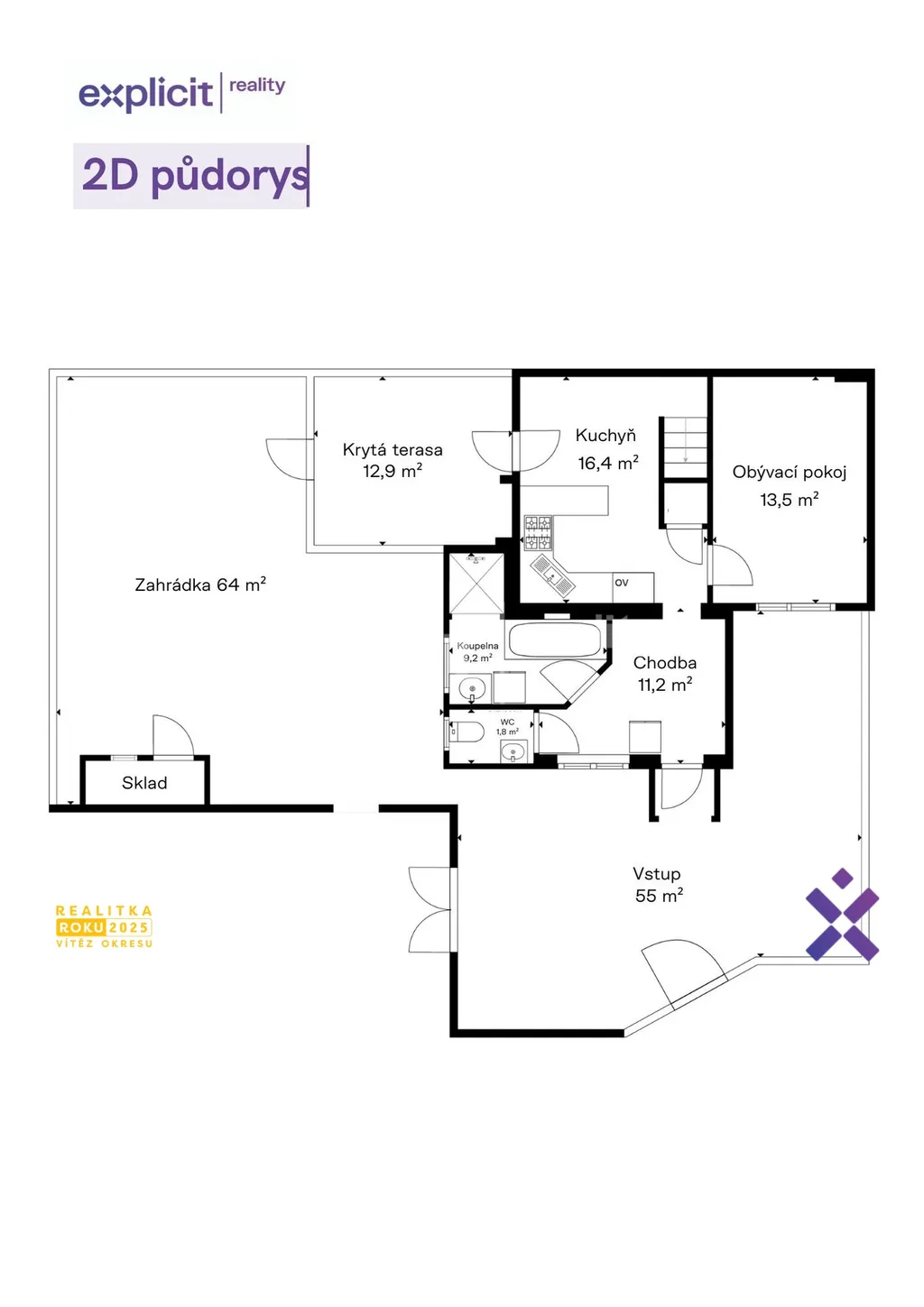 Dům je dispozičně velmi prakticky řešený a nabízí funkční propojení interiéru se zastřešenou terasou a navazující zahradou, což vytváří příjemné soukromí i prostor pro každodenní relaxaci.