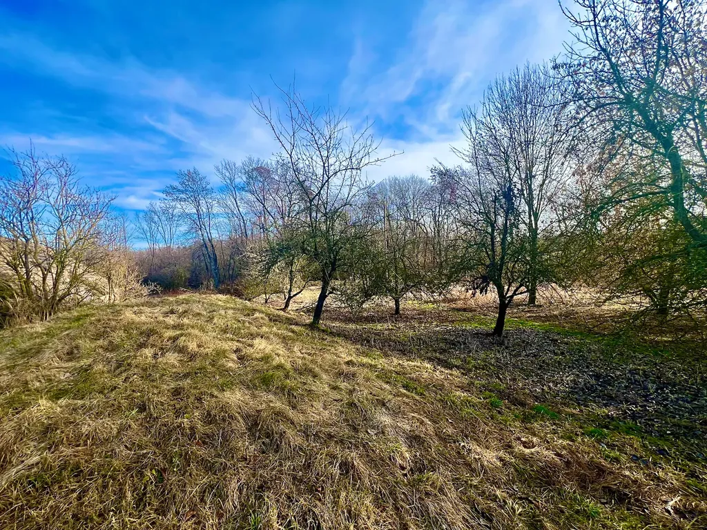 Na pozemku je několik vzrostlých ovocných stromů.