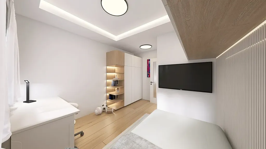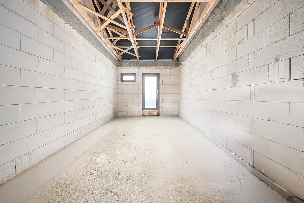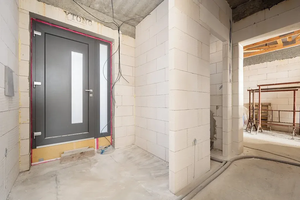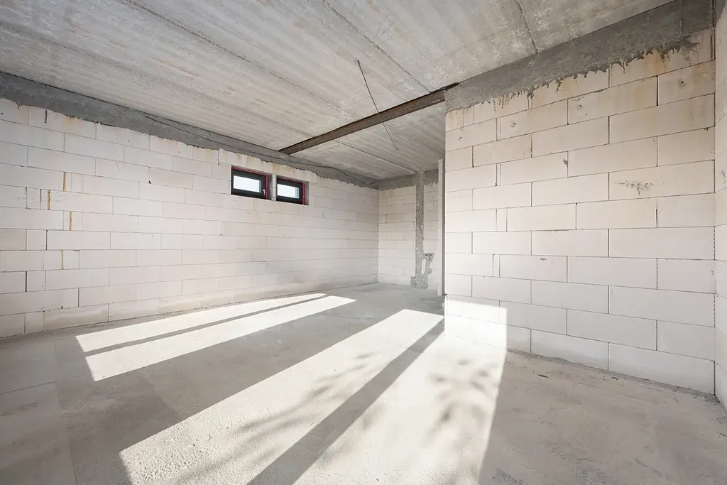 Dům je aktuálně ve fázi rozestavěnosti – jsou dokončeny rozvody vody a elektřiny, ale chybí finální omítky, podlahy, obklady a zařizovací prvky. To umožňuje budoucímu majiteli dokončit interiér podle vlastního vkusu a potřeb – od výběru materiálů až po finální design kuchyně a koupelny.