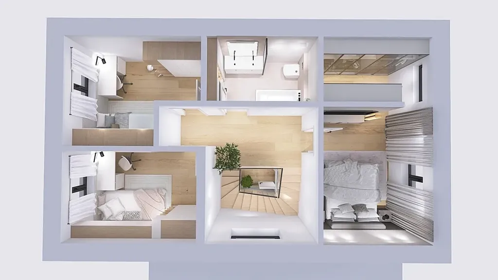 Ve 2. nadzemním podlaží (49,47 m²) se nachází chodba (7,07 m²), pokoj (9,91 m²), druhý pokoj (10,28 m²), koupelna (4,26 m²) a ložnice se šatnou (17,95 m²).