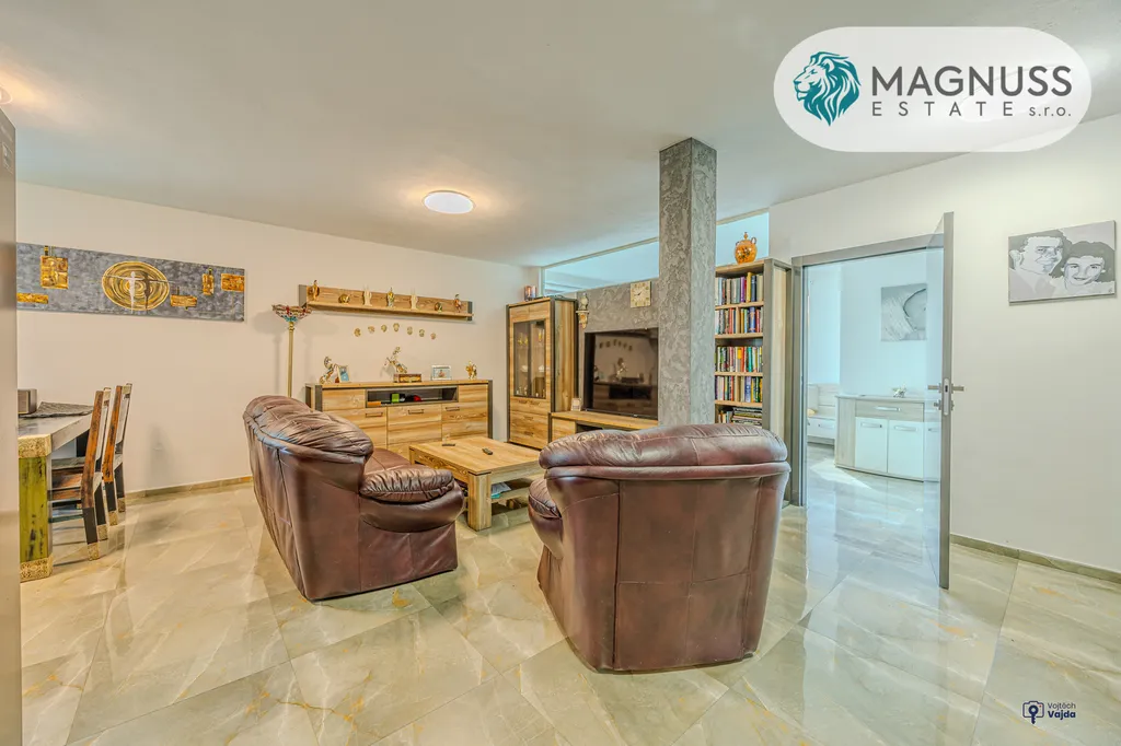 Byt prošel kompletní rekonstrukcí – nové podlahy (dlažba s podlahovým vytápěním), moderní koupelna, kuchyňská linka, elektroinstalace i interiérové dveře.