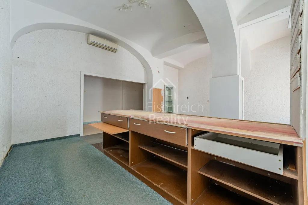 V přízemí domu se nachází nebytové prostory o celkové ploše 107 m. Prostor tvoří prodejna, dvě samostatné místnosti, chodba a sociální zázemí (WC). Prostory jsou vybaveny klimatizací a elektrickými přímotopy.