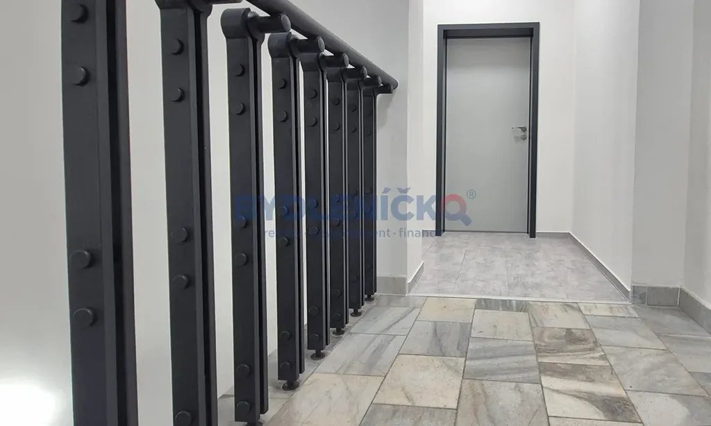 Dispozice bytu: předsíň, kancelář + kuchyňský kout, koupelna. Podlahy pokrývá vinylová krytina, která zajišťuje snadnou údržbu a příjemný komfort při užívání.