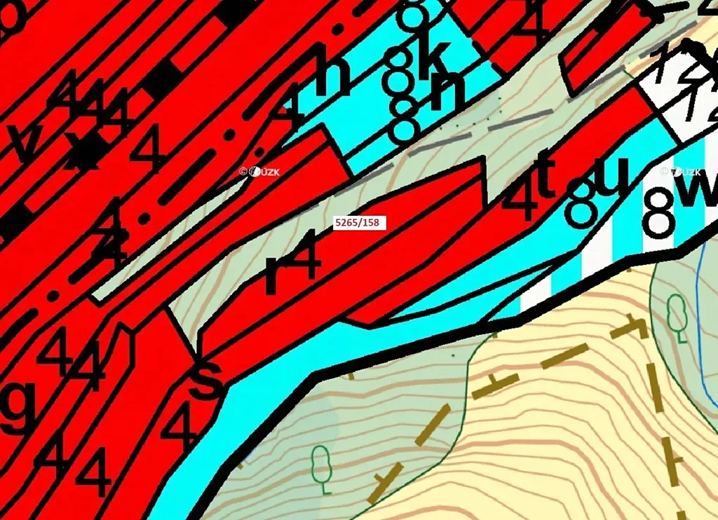 Lesní pozemek o výměře 1065 m2, parcelní číslo 5265/158, podíl 1/1, katastrální území Strání, obec Strání, obec s rozšířenou působností Uherský Brod, okres Uherské Hradiště, Zlínský kraj.