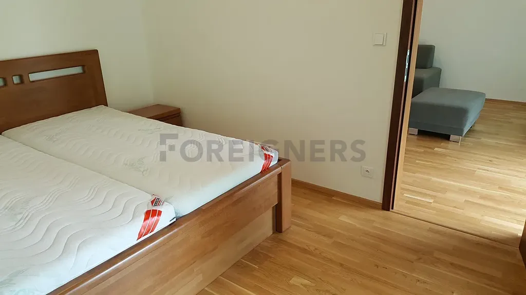 Byt nabízí praktické a prostorné uspořádání, samostatná ložnice s manželskou postelí, prostorný obývací pokoj propojený s kuchyní a jídelní částí, velká koupelna sprchový kout i vana, samostatná šatna, vstupní chodba s vestavěnými skříněmi.