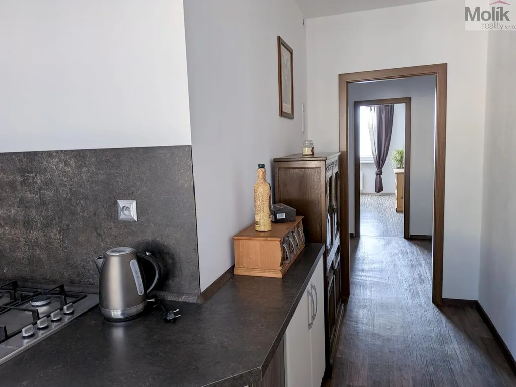 Byt se nachází ve 3. patře (4. nadzemním podlaží) domu bez výtahu. V minulých letech prošel kompletní rekonstrukcí, která zahrnovala nové elektrické rozvody v mědi, snížené stropy, kuchyňskou linku na míru, nové dveře a obložky i modernizaci koupelny. Byt je prostorný a světlý, zaujme též krásným výhledem na okolní zeleň a hřebeny Krušných hor. Díky své poloze si zde vychutnáte příjemnou atmosféru, kde vás nebude rušit hluk dopravy ani sousedů. V docházkové vzdálenosti 5-10 minut se nachází Zámecká zahrada, sportovní areál Bažantnice, rybník Leontýna i centrum města.