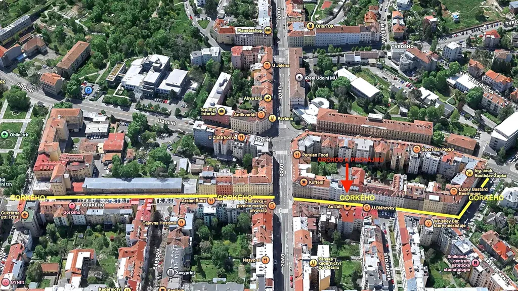 Obchod se nachází ve frekventované části Gorkého, nedaleko Úvozu, kde jsou soustředěny všechny obchody z čtvrti.