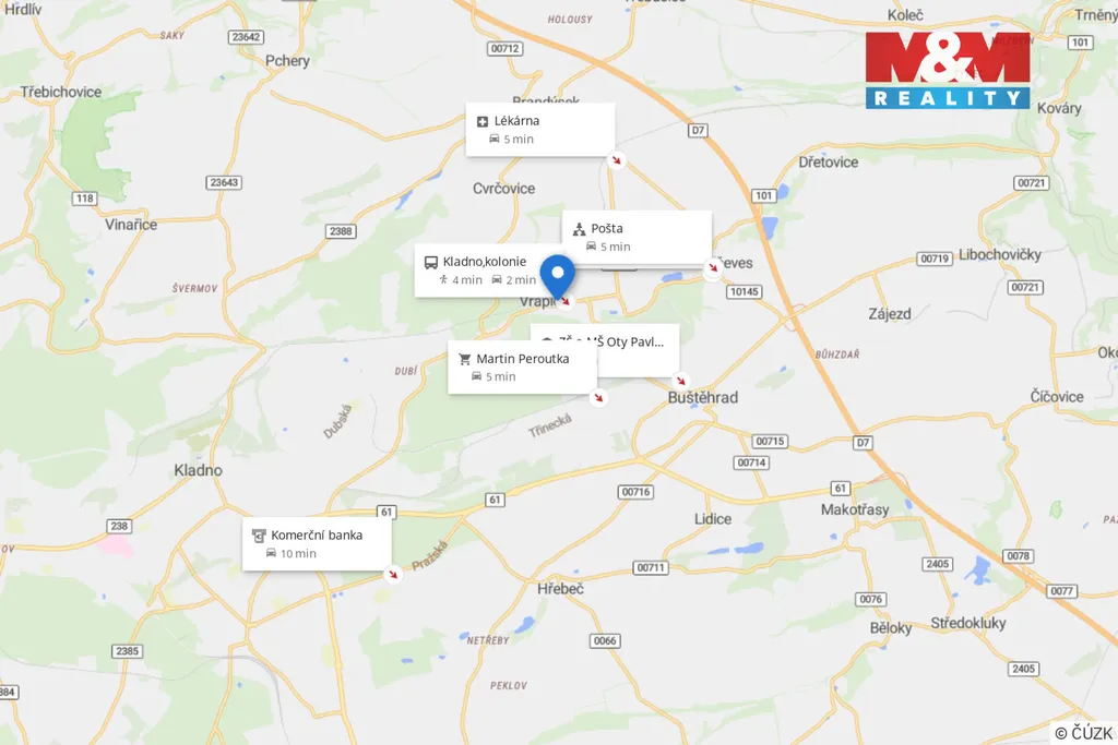 Klidná lokalita nabízí příjemné bydlení s dobrou dostupností do centra Kladna i směrem na Prahu. V okolí se nachází základní občanská vybavenost a zastávky MHD.